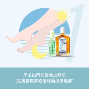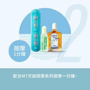 早上出门前及晚上睡前(先用壹点宁或活络油按摩足部),配合M7天磁按摩系列按摩一分钟,可改善肌肉疲劳绷紧所引起的酸疼。